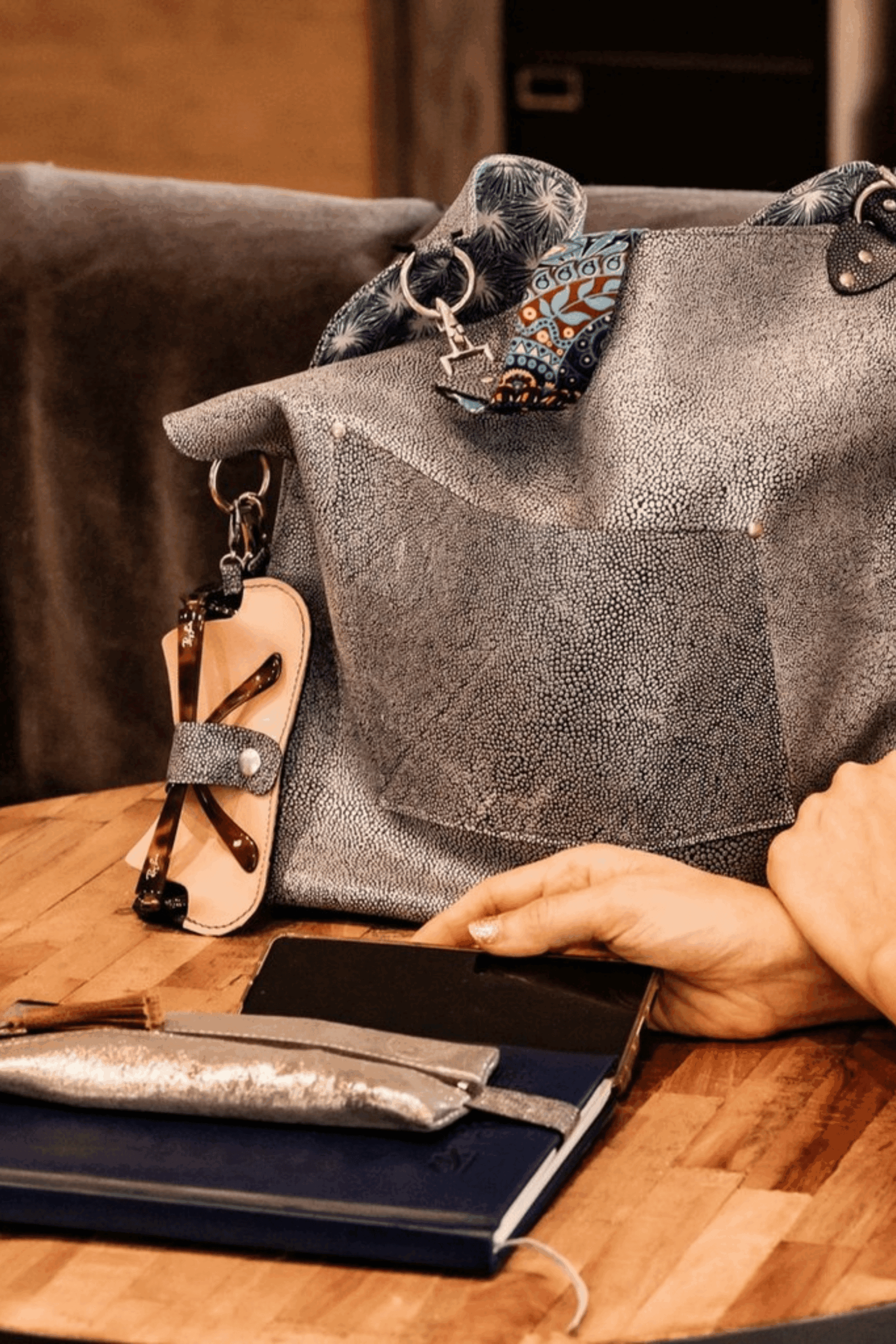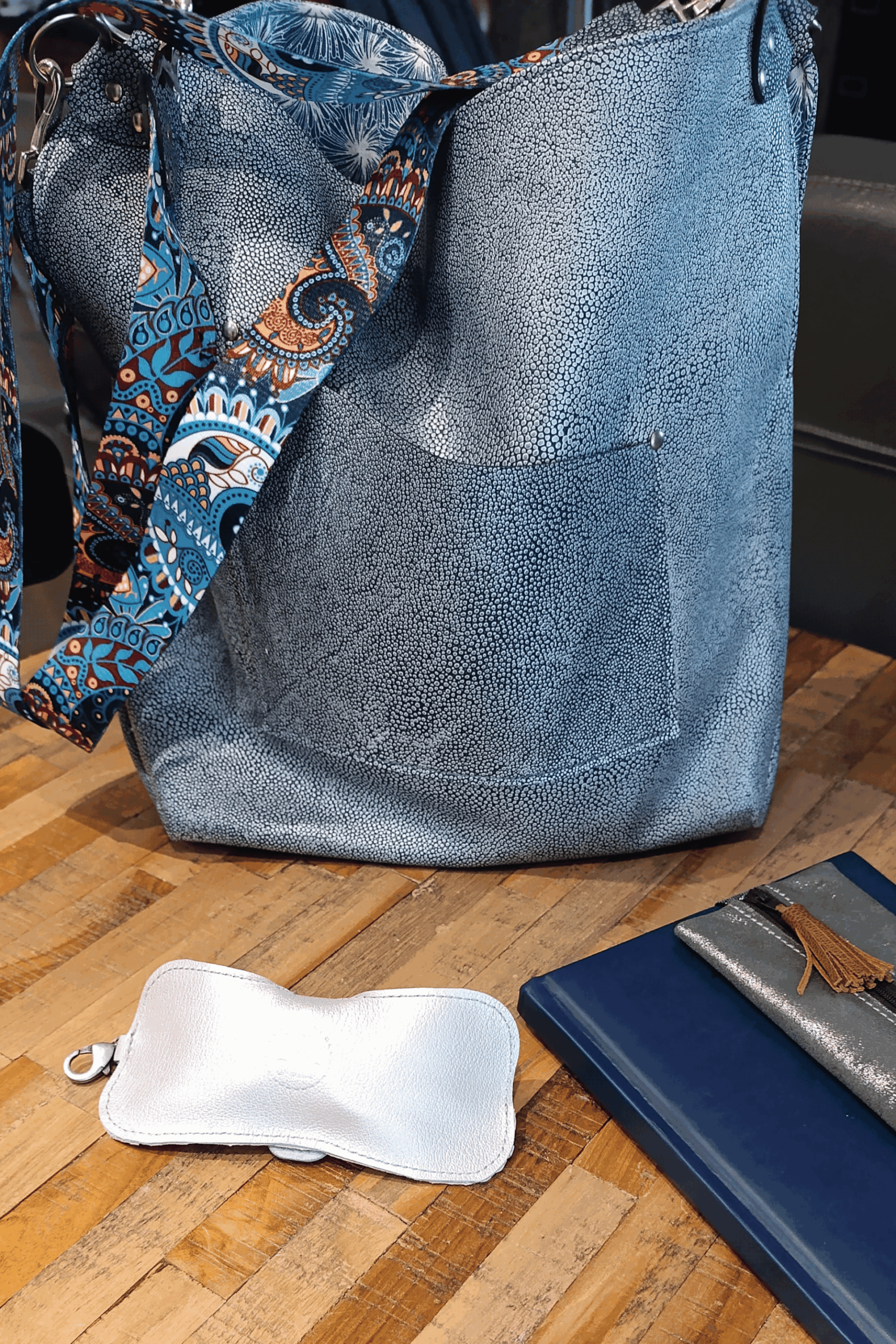 Accroché à la ceinture lors d’une promenade, suspendu à un sac en ville ou glissé dans une valise : il suit les mouvements sans jamais s’imposer. C’est un accessoire de slow fashion, pensé pour répondre à un besoin concret avec style.
