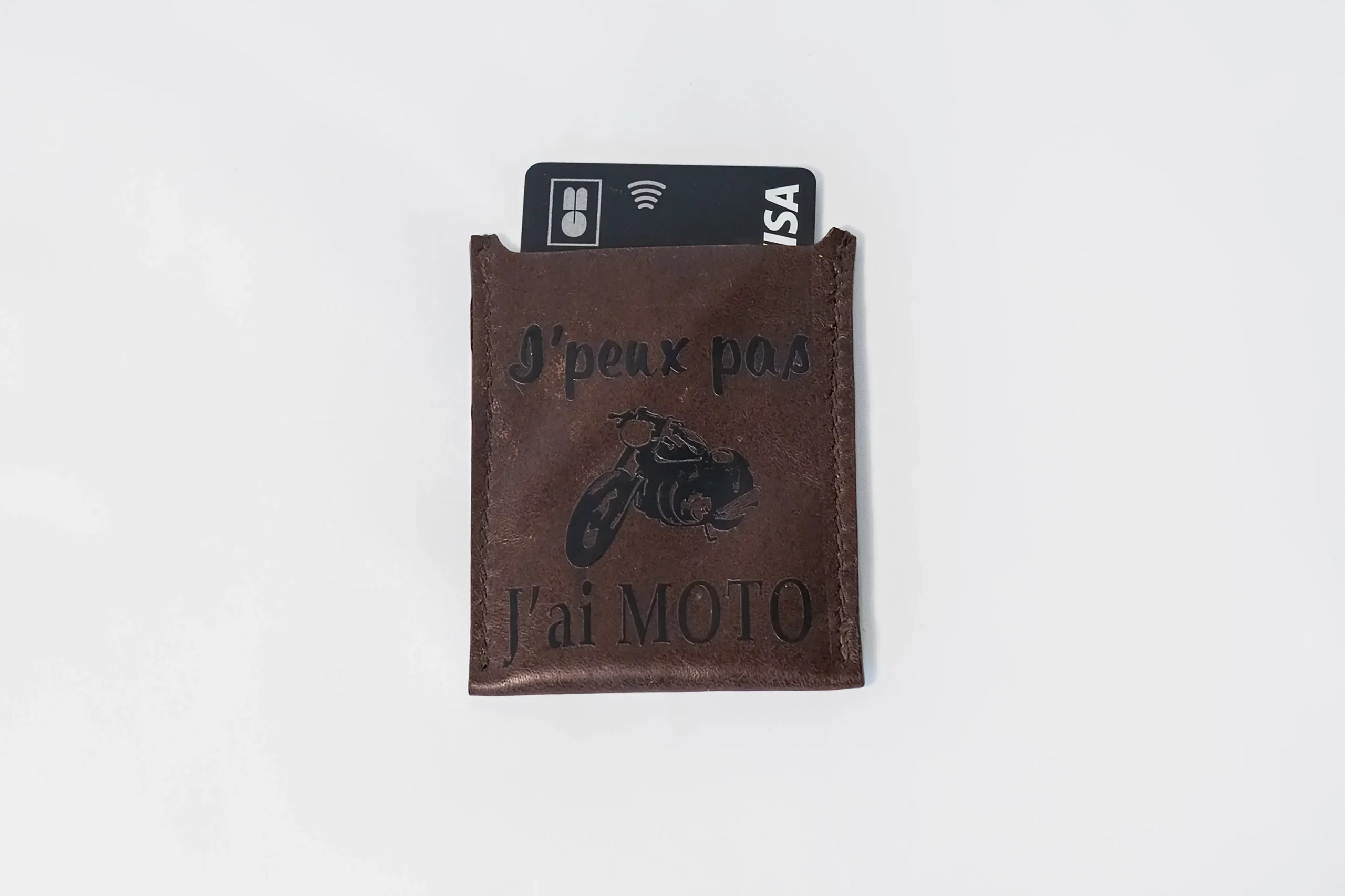 porte-carte simple floqué "J'peux pas j'ai moto"-Pau de Cuir-Pau-Maroquinerie artisanalePorte-carte « J’peux pas j’ai moto »