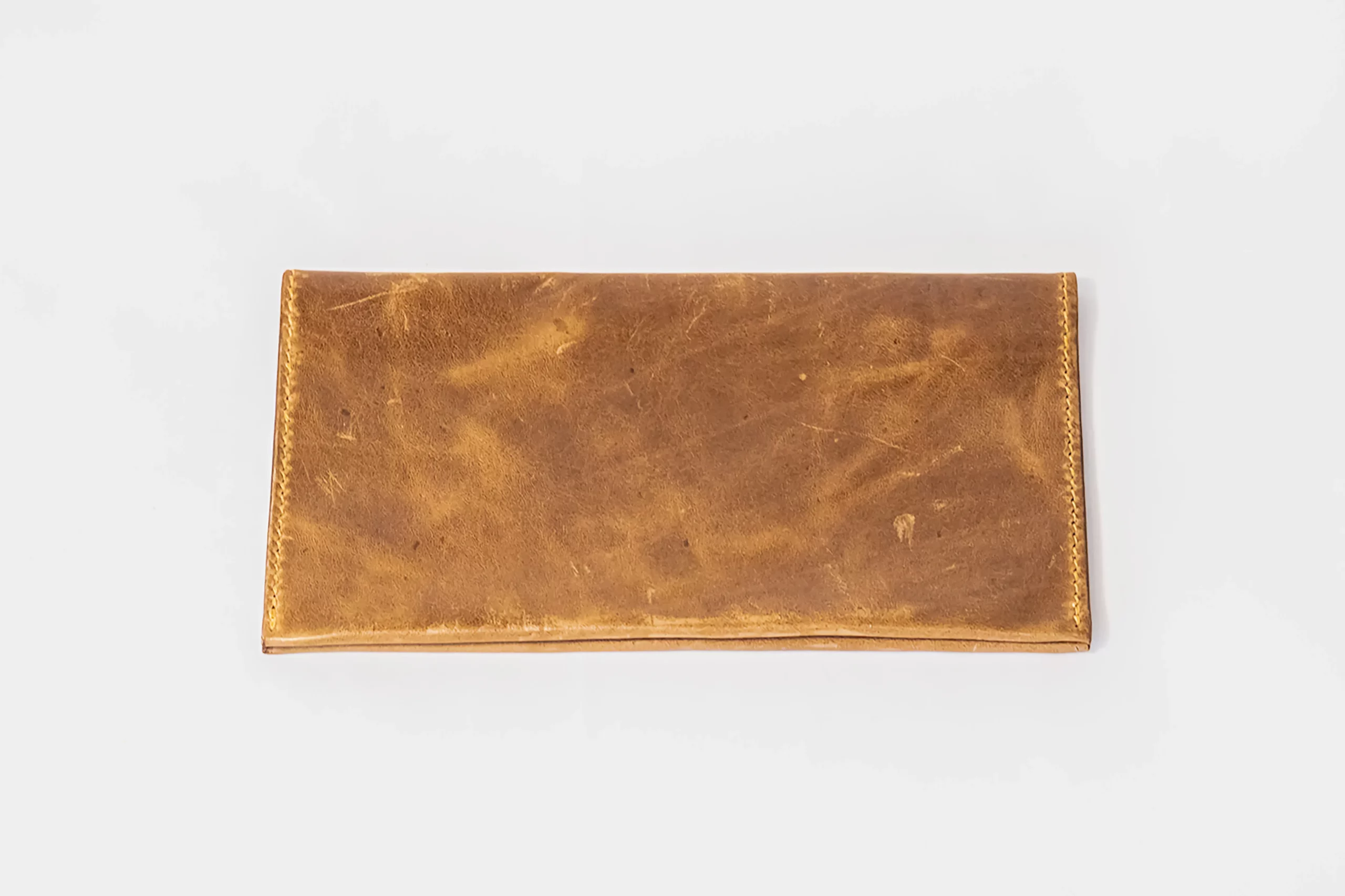 Porte-chéquier en cuir brun clair vieilli-Pau de Cuir-Pau-Maroquinerie artisanalePorte-chéquier simple brun vieilli