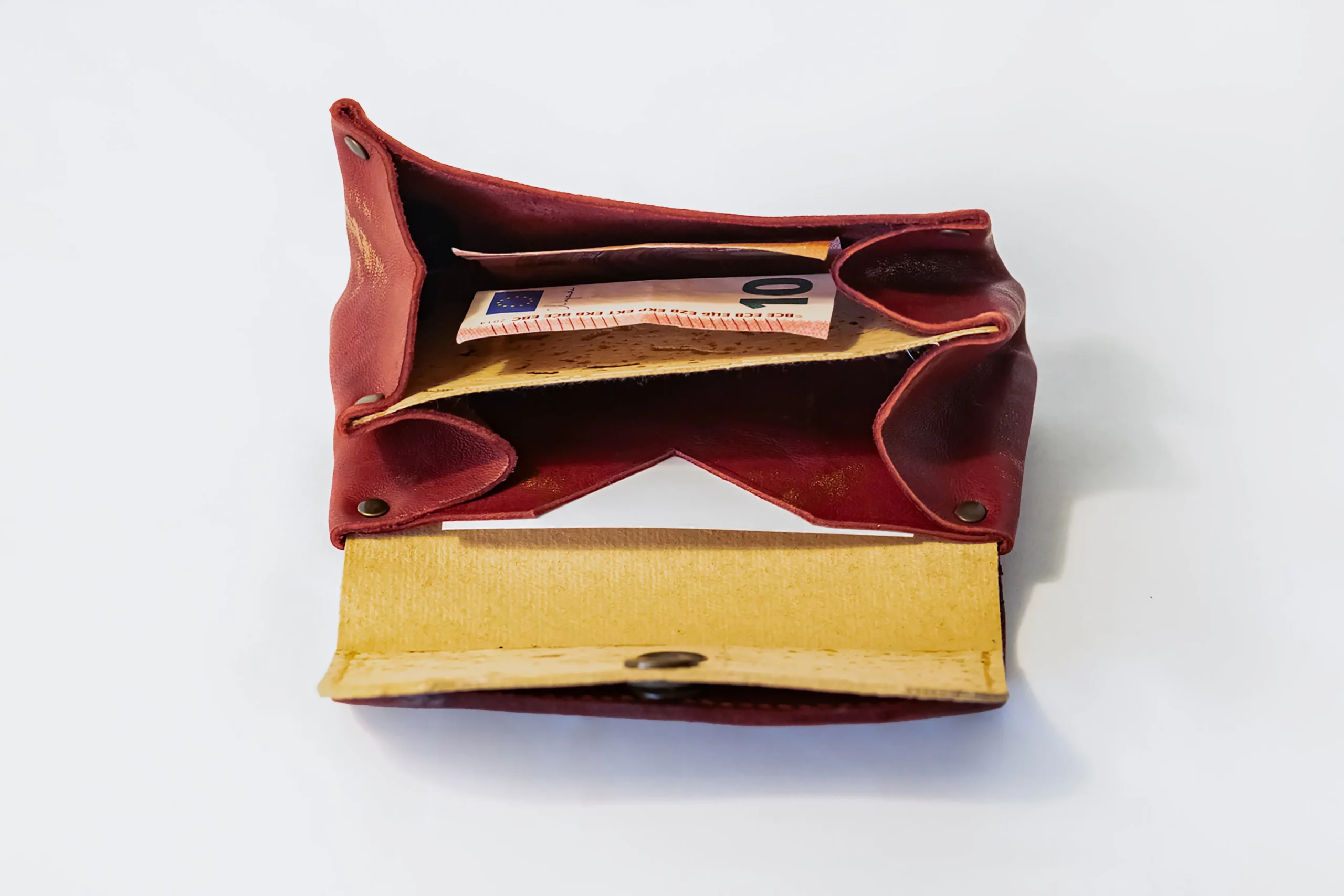 • un porte-monnaie avec un espace dédié aux pièces et un autre pour les billets,