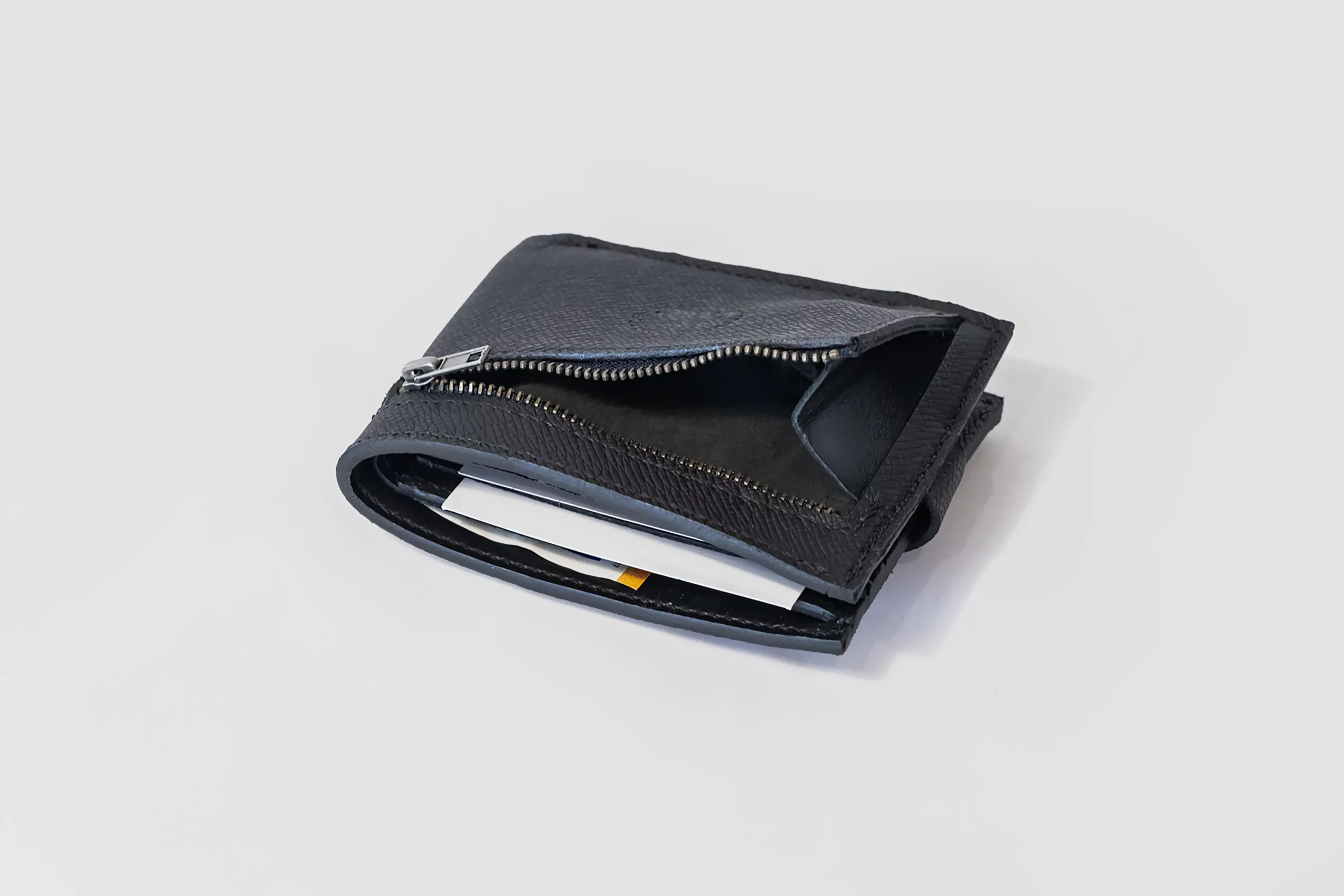 – Et au dos, un porte-monnaie zippé, pratique et discret, pour accéder à la monnaie sans ouvrir tout le portefeuille.