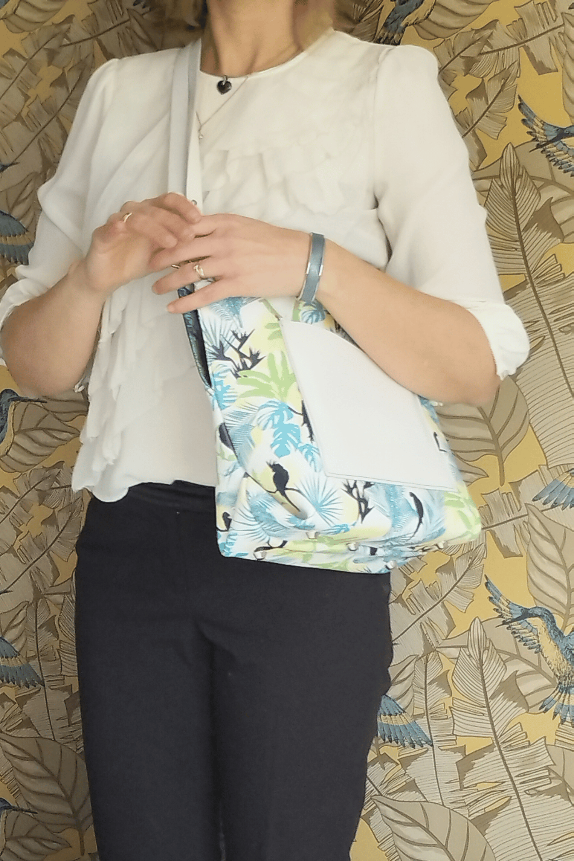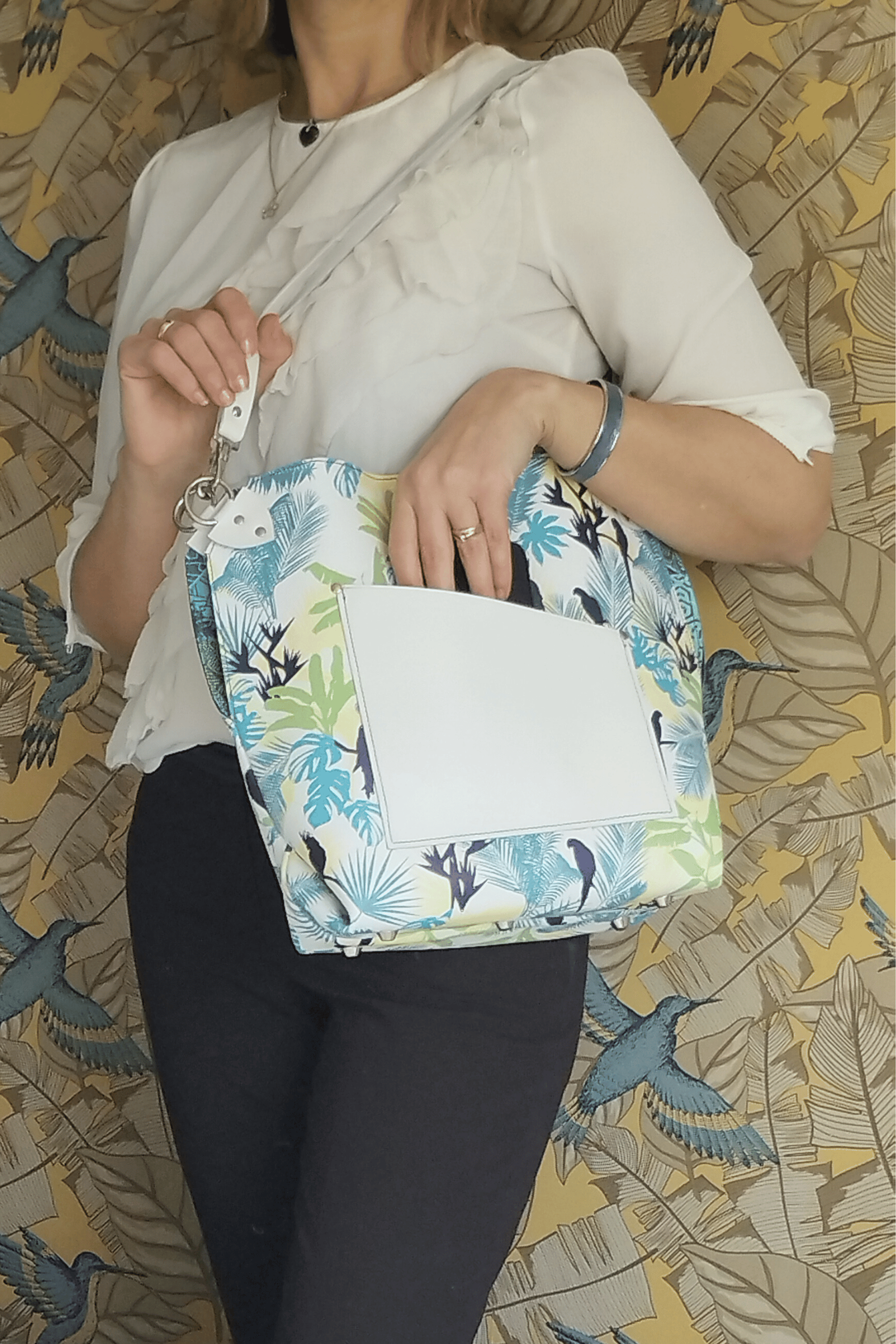 – Lanière en cuir lisse blanc pour un porté épaule ou croisé selon votre gabarit