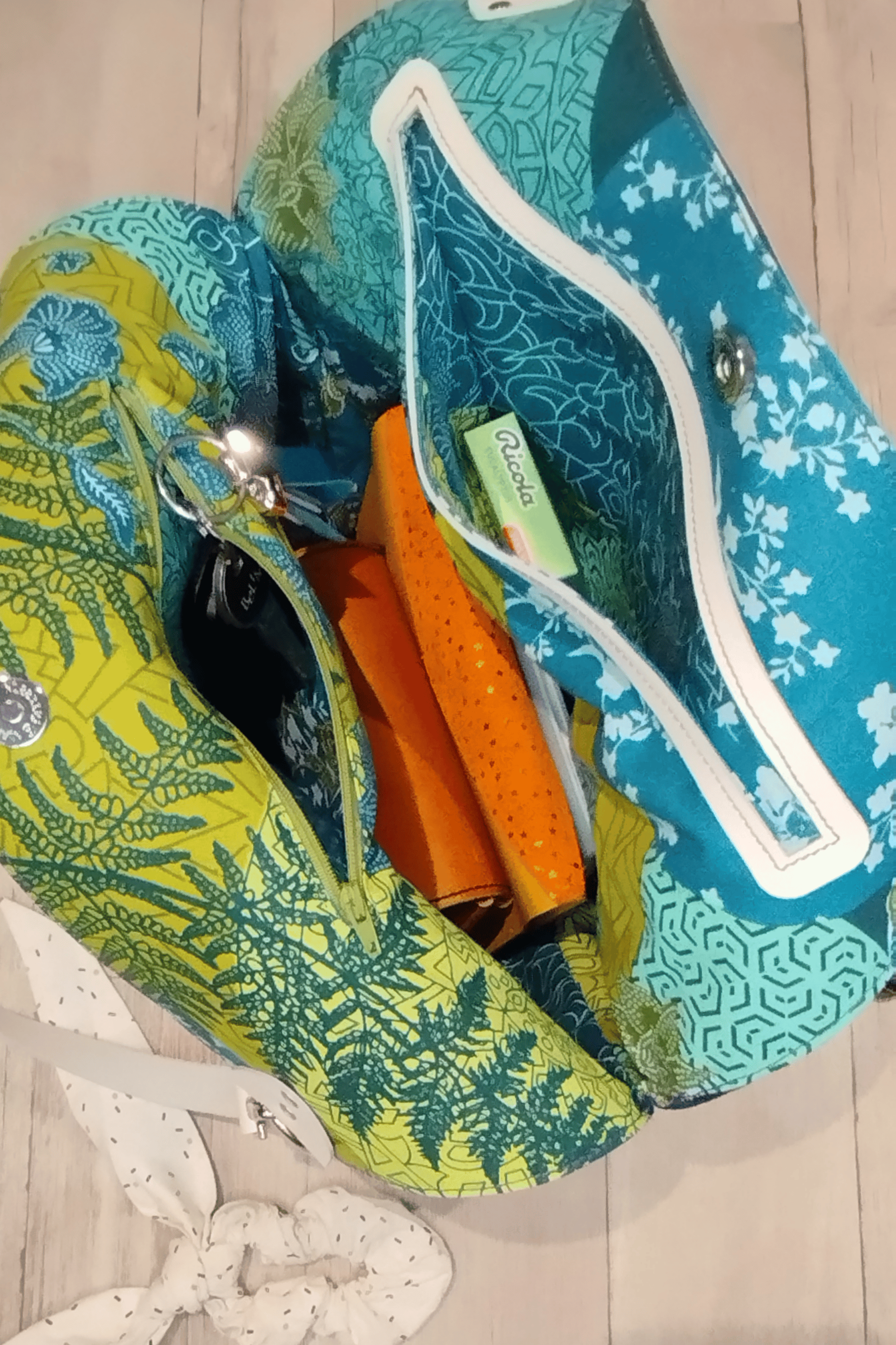 – Doublure intérieure en coton jardin japonais, dans les tons de bleu et vert olive